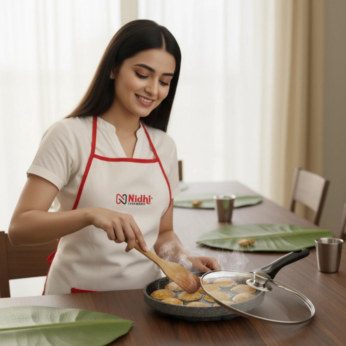 Enjoy authentic, healthy South Indian cooking at home with the Non-Stick Appam Patra with Glass Lid. Designed with 12 cavities, this cookware ensures you prepare fluffy, golden appams in one go—perfect for family meals or gatherings.